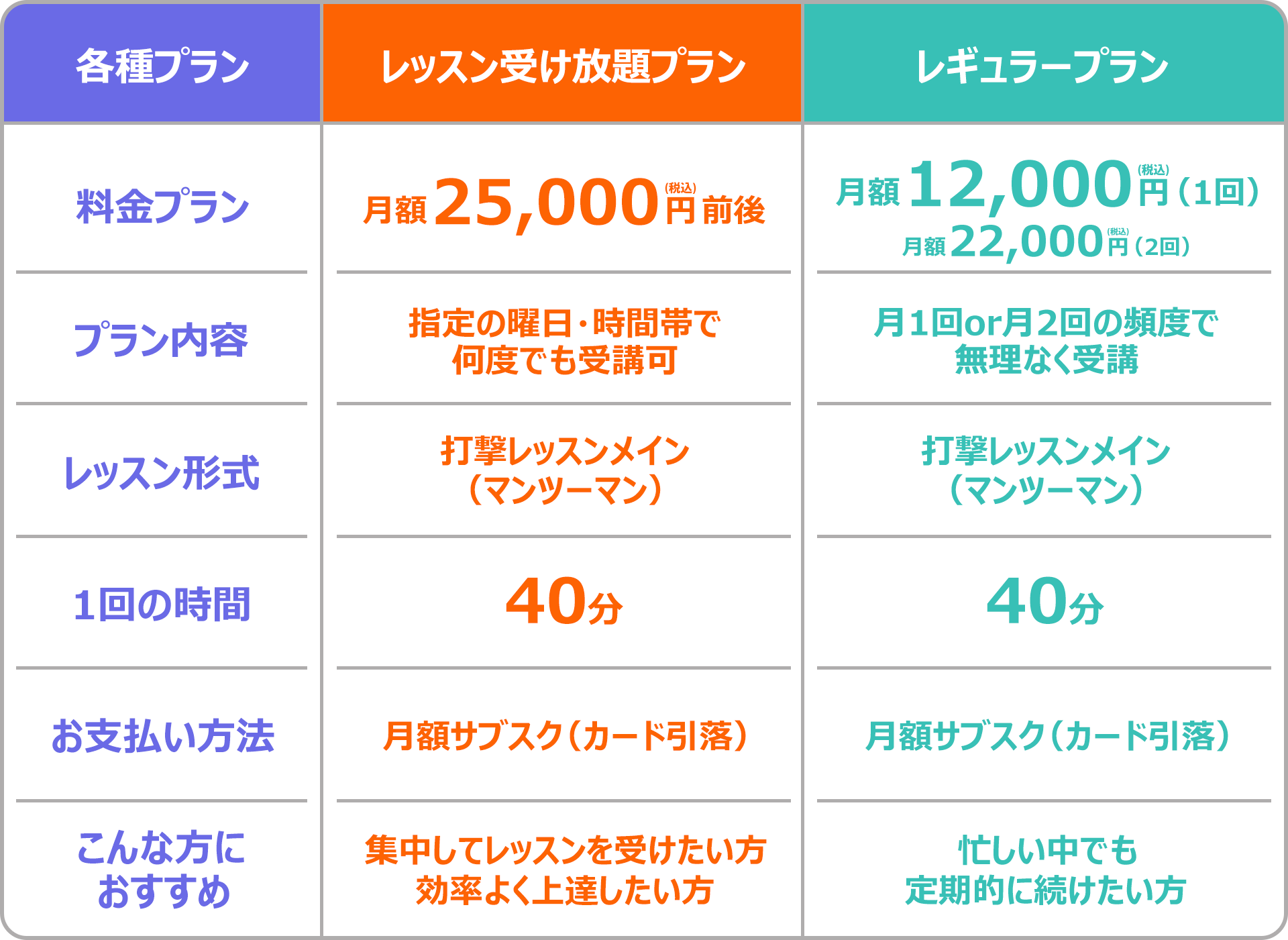 週1回以上のレッスンを受けられる【通い放題プラン】と、